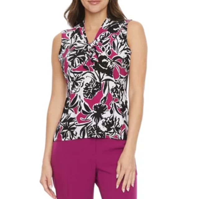 Black Label by Evan-Picone Womens Split Tie Neck Sleeveless Blouse