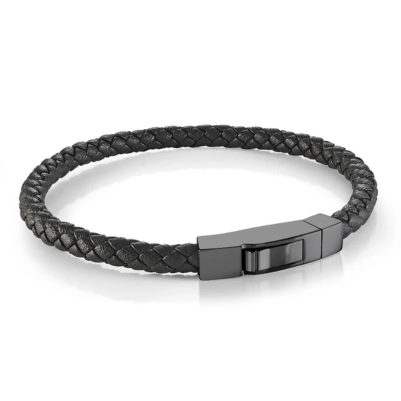Black Leather and Steel Push Casp Bracelet in San Juan, PR
