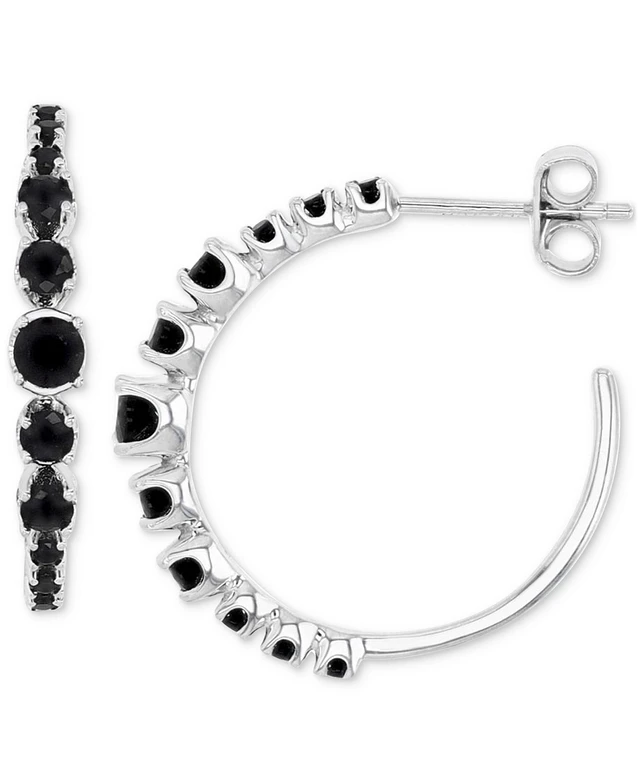 Black Spinel Graduated Small Hoop Earrings (1-3/8 ct. t.w.) in Sterling Silver, 0.79"