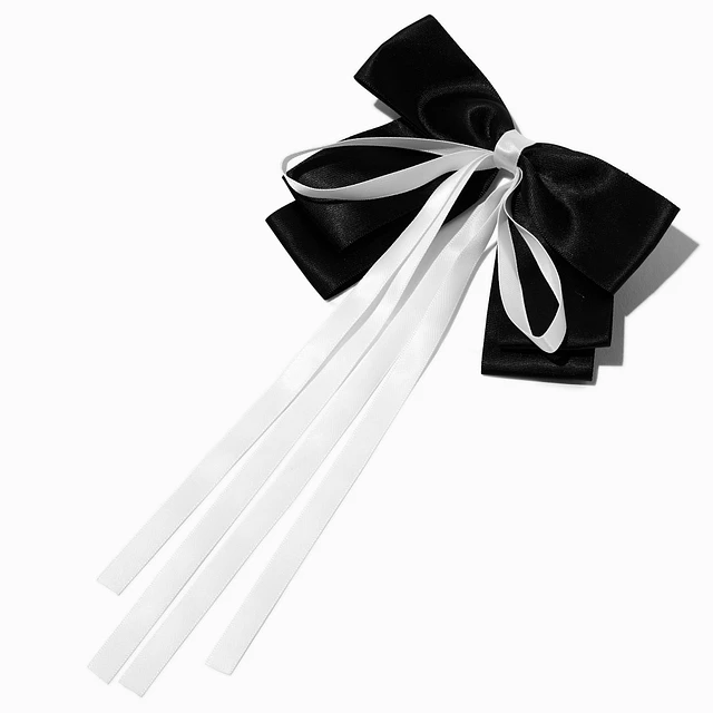 Black & White Long Ribbon Hair Bow Clip