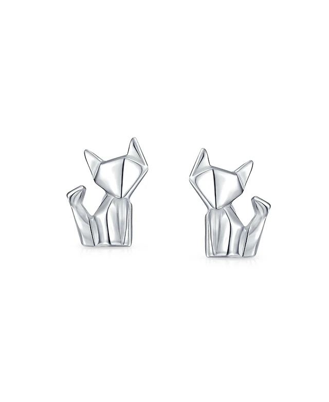 Bling Jewelry 3D Geometric Origami Cat Stud Earrings in Sterling Silver
