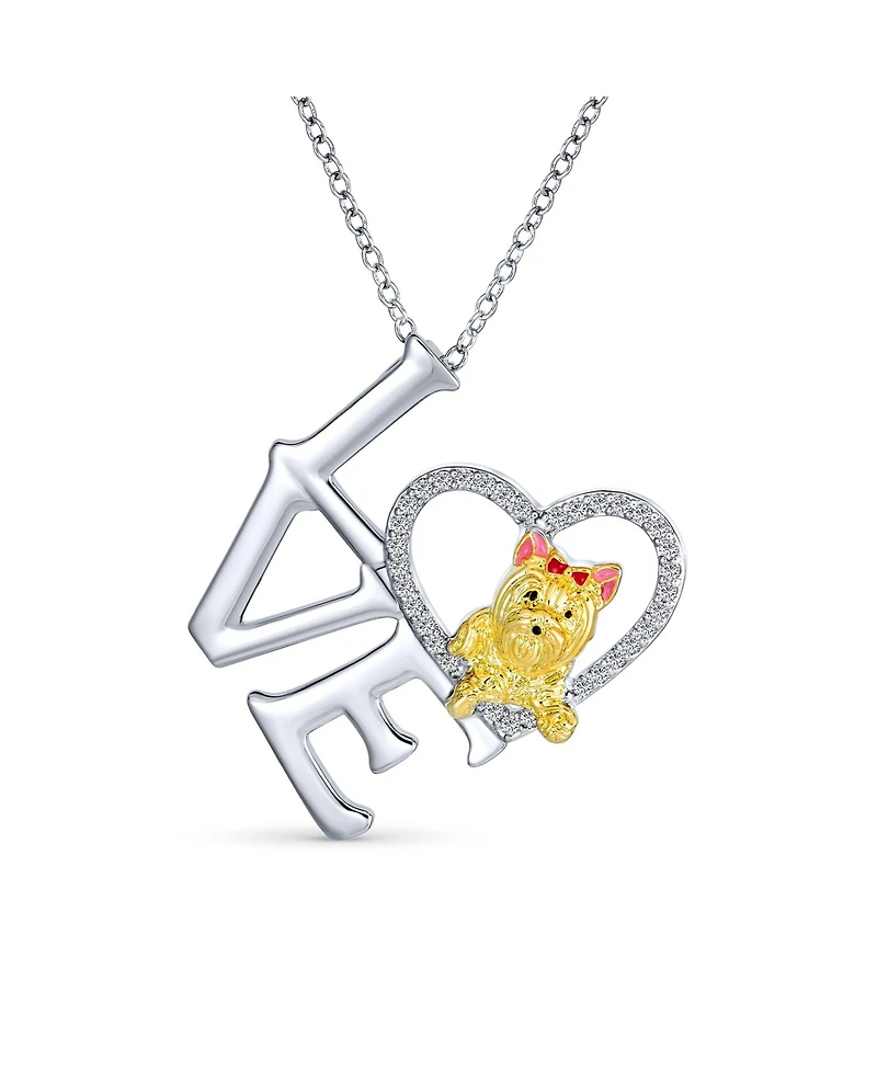 Bling Jewelry Animal Lover Heart Puppy Pet Dog Yorkie Pedant Necklace Gold Silver Plated