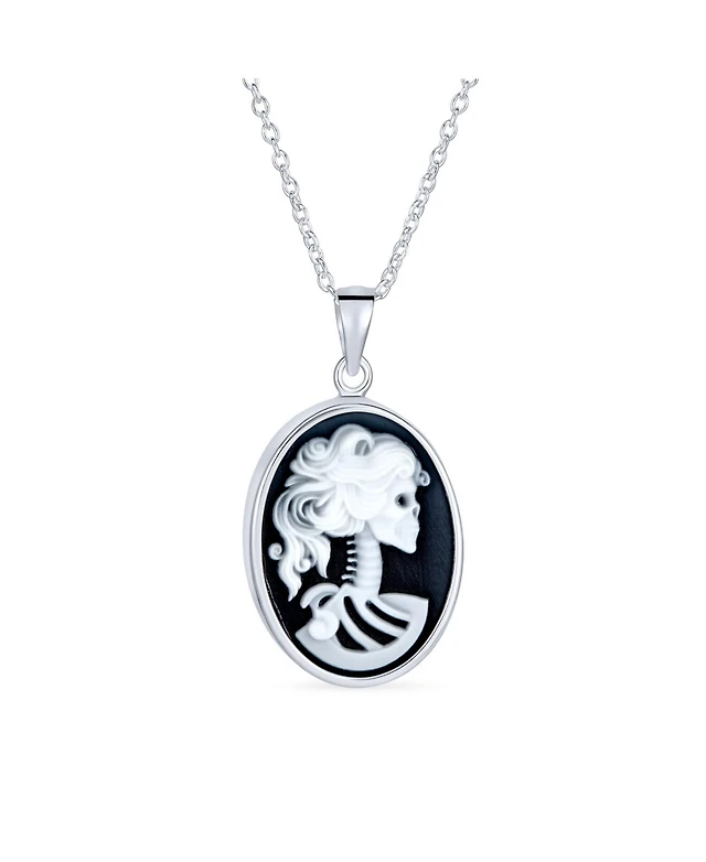 Bling Jewelry Black Oval Female Lolita Skelton Cameo Pendant Bezel Sterling Silver