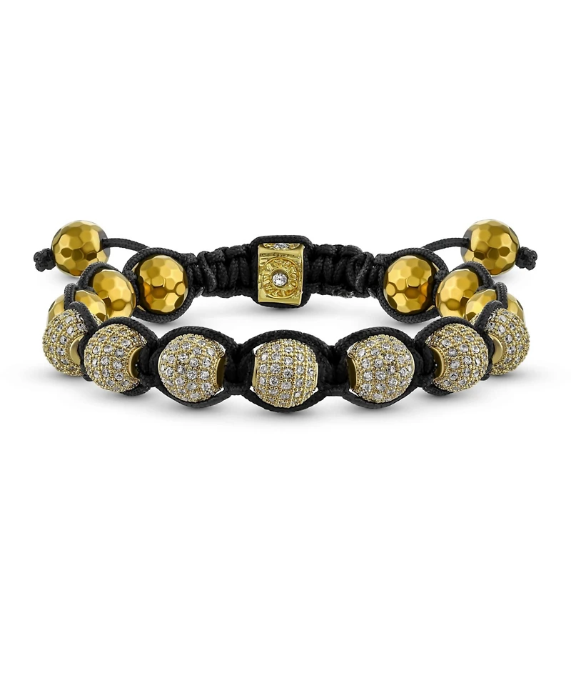 Bling Jewelry Black White Gold Tone Chain Link Bracelet with Crystal Ball Beads Cord
