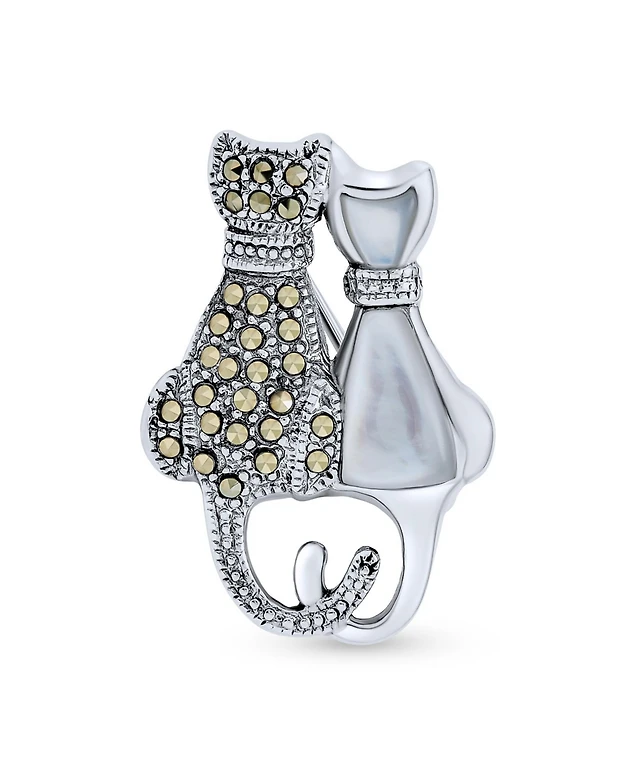 Bling Jewelry Black & White Marcasite Cat Brooche Pin Sterling Silver Pearl & Onyx