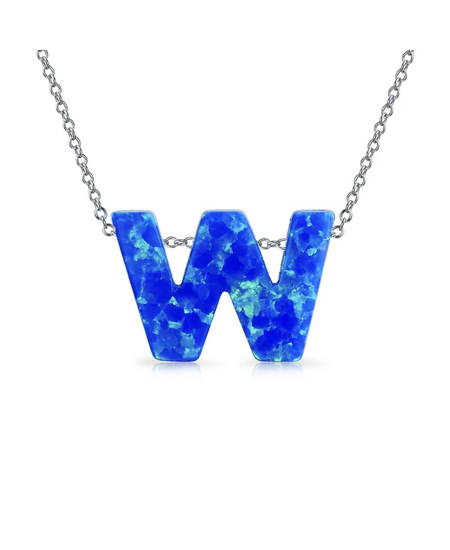 Bling Jewelry Blue Celestial Crescent Opal Pendant Necklace Letter W Sterling Silver Initials