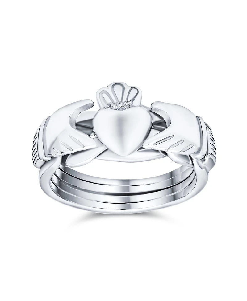 Bling Jewelry Celtic Hands Crown Heart Friendship Claddagh Puzzle Ring .925