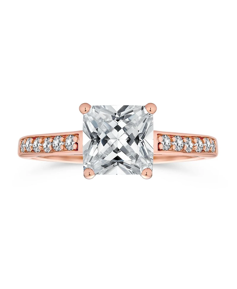 Bling Jewelry Classic 2.5CT Princess Cut Cz Solitaire Promise Ring with Pave Side Stones Rose Gold Plated Sterling Silver in San Juan, PR