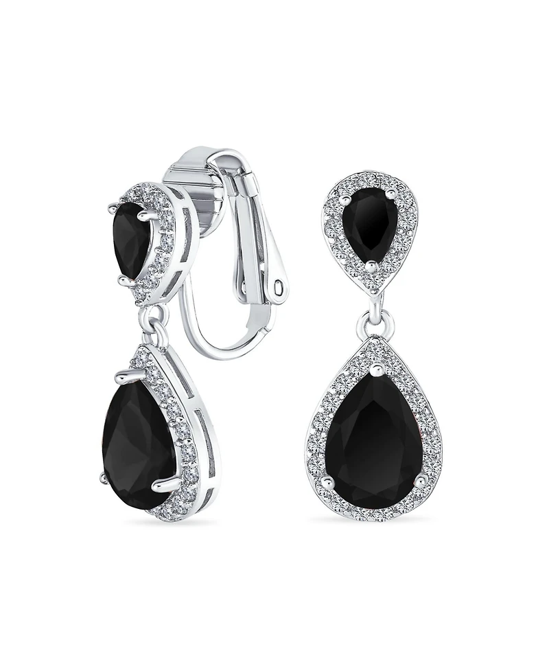 Stunning Style -Formal Art Deco Estate Style Teardrop- Cz dangling clip on earring is prefect for prom, evening wear, cocktail, holiday, or party gift. Comes in many Cz month colors. Secure snap clip for non-pierced ears