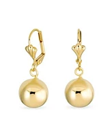 Bling Jewelry Classic Elegant Simple Round Light Weight Dangle Lever Back Drop Ball Earrings Yellow 18K Gold Plated Brass