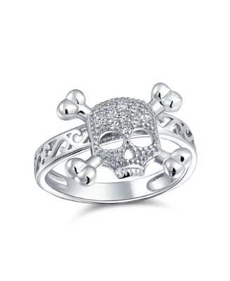 Gothic Style - The eerie, skull and crossbones motif is strikingly enhanced by lustrous pave czs in this arresting statement ring. A filigree band adds a surprising touch of elegance. Crafted with 925 sterling silver. Punk rock edge elevated.