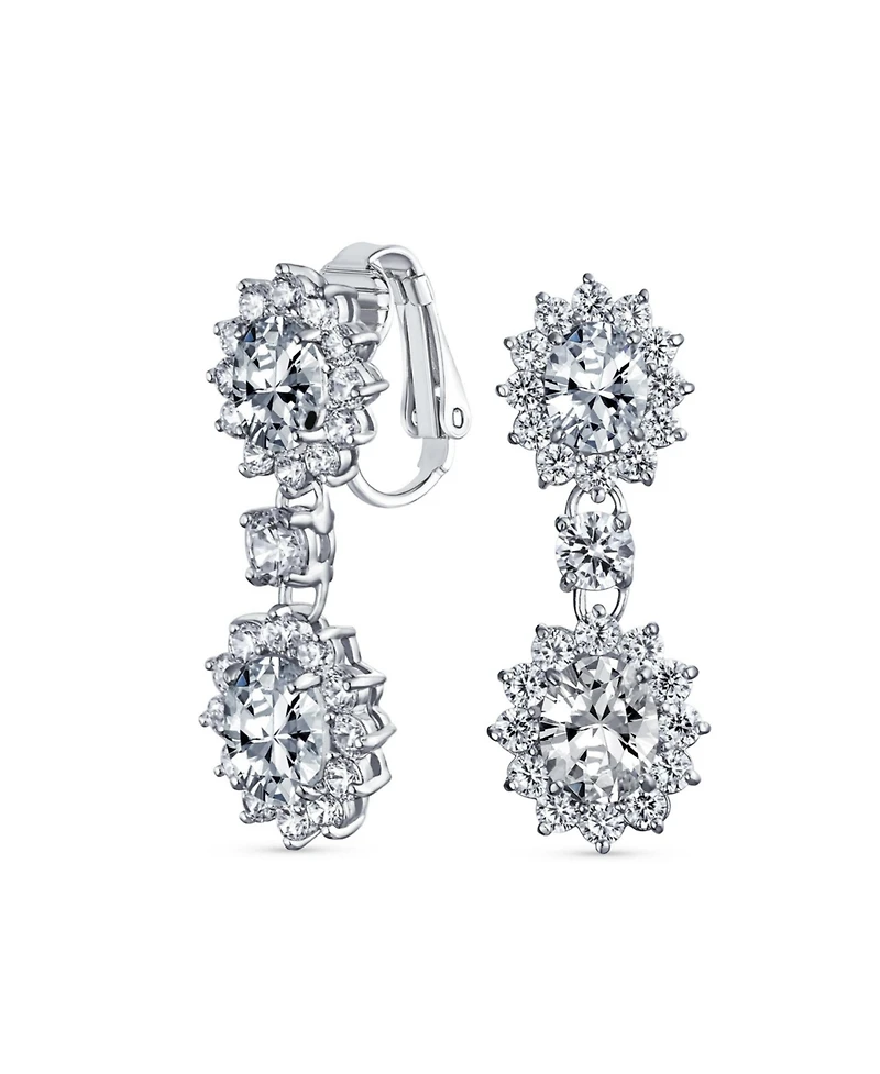 Bling Jewelry Crown Halo Pave Cubic Zirconia Cz Drop Dangling Oval Chandelier Clip On Earrings Statement Non-Pierced in San Juan, PR