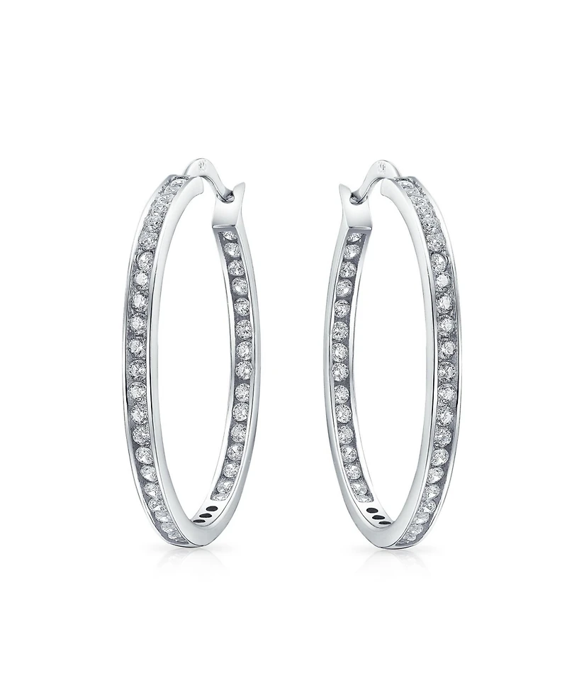 Bling Jewelry Cubic Zirconia Round Solitaire Channel Set In Side Out Statement Big Cz Hoop Earrings Sterling Silver