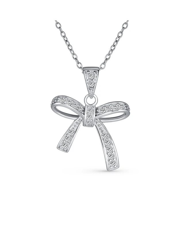 Bling Jewelry Dainty Clear Cubic Zirconia Pave Cz Station Holiday Present Ribbon Bow Pendant Necklace Sterling Silver