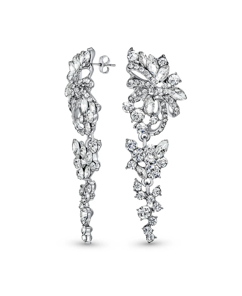 Bling Jewelry Dangling Holiday Party Waterfall Long Flower Bow Crystal Prom Pageant Chandelier Statement Earrings Pink Rose Gold Or Silver Plated