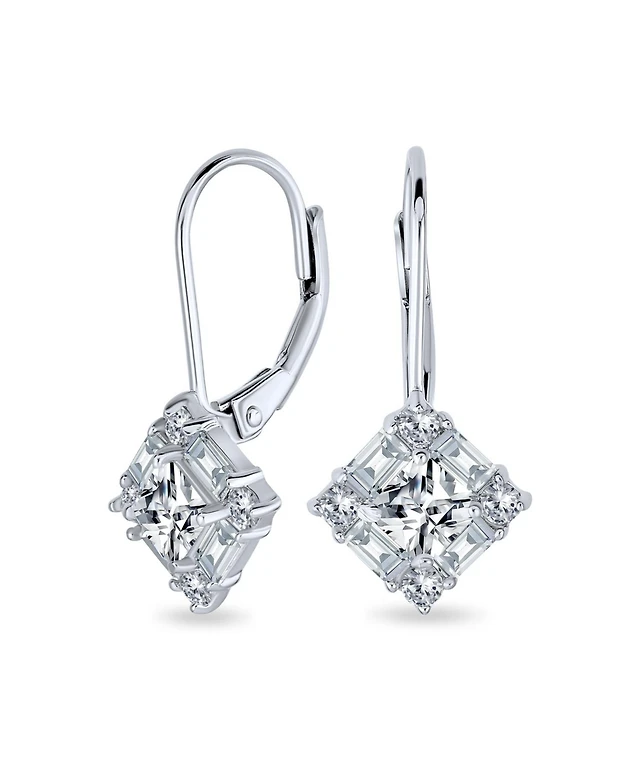 Bling Jewelry Deco Style Cz Baguette Lever back Drop Earrings Prom Sterling Silver