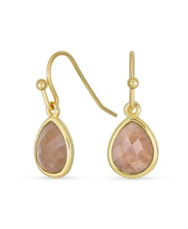 Bling Jewelry Delicate Fine Dusty Rose Natural Sandstone Quartz Faceted Briolette Teardrop Pear Shaped Drop French Wire Fish Hook Earrings Yellow Gold Plated