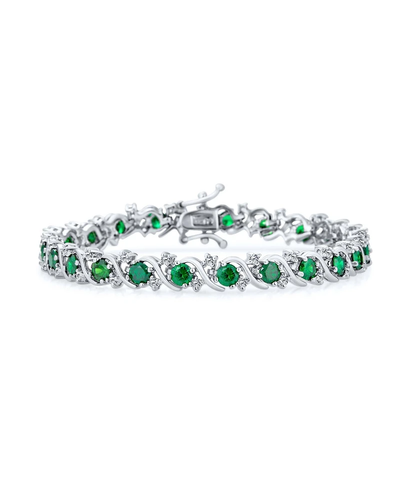 Bling Jewelry Fancy Emerald Green Cz Cubic Zirconia Wave S-Link Swirl Tennis Bracelet 7 Inch Silver Plated