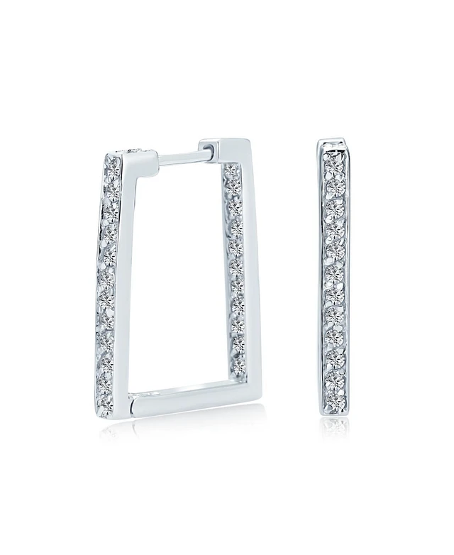 Bling Jewelry Geometric Rectangle Square Inside Out Channel Set Cz Large Hoop Earrings Of Cubic Zirconia Sterling Silver