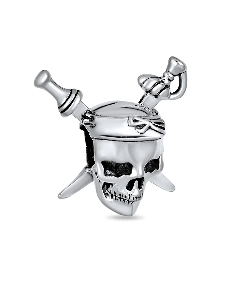 Bling Jewelry Halloween Pirate Skull & Cross Swords Charm Bead Sterling Silver European Bracelet