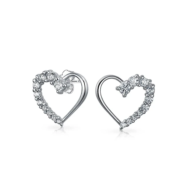 Bling Jewelry Love Is A Journey Cubic Zirconia Pave Cz Open Heart Shaped Stud Earrings Sterling Silver