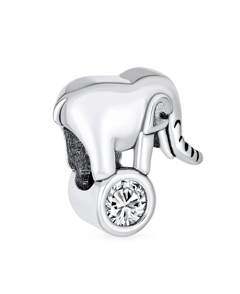 Bling Jewelry Lucky Animal Good Luck Trunk Up Circus Elephant Bezel Cz Bead Charm .925 Sterling Silver