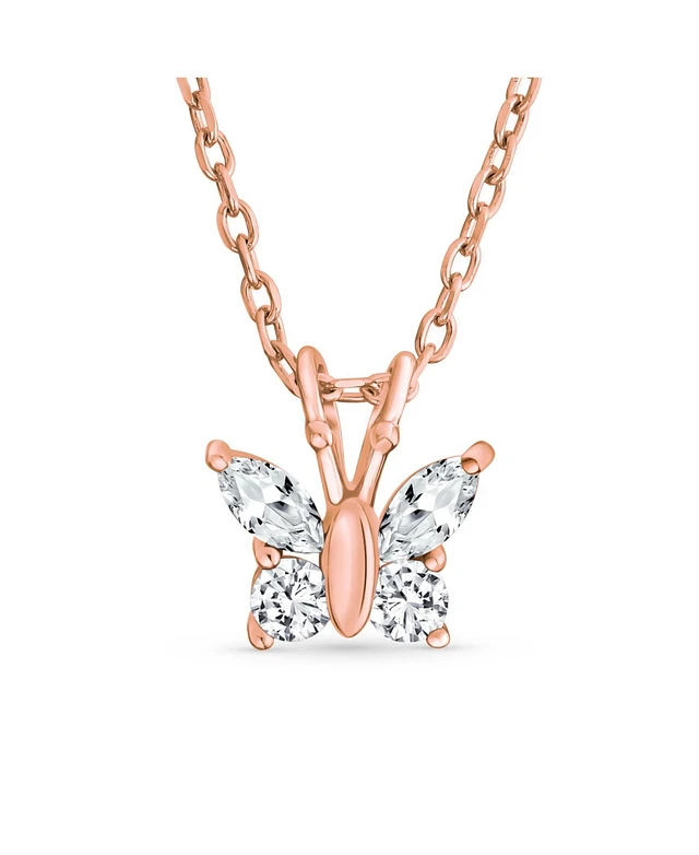 Bling Jewelry Mini Petite Tiny Clear Cubic Zirconia Cz Garden Insect Butterfly Pendant Necklace Rose Gold Plated .925 Sterling Silver