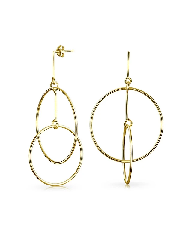 Bling Jewelry Minimalist Geometric Round Thin One Two Open Interlocking Circle Dangle Earrings .925 Sterling Silver 2.5 Inch Diameter