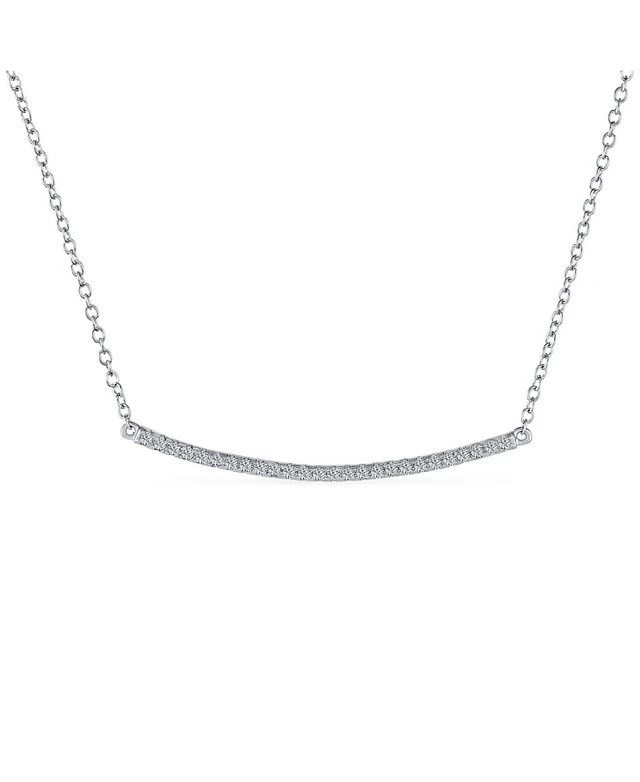 Bling Jewelry Minimalist Modern Cz Bar Sideways Pendant Necklace in Sterling Silver