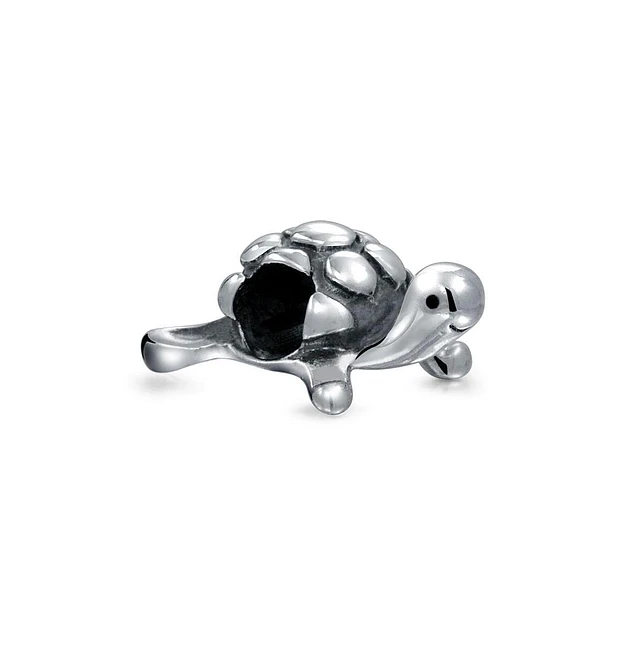 Bling Jewelry Nautical Tropical Beach Vacation Island Tortoise Sea Turtle Bead Charm Oxidized .925 Sterling Silver