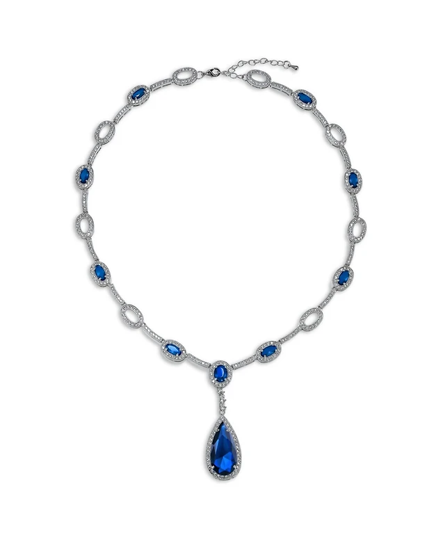 Bling Jewelry Oval Fashion Cubic Zirconia Cz Pear Shape Statement Large Teardrop Y Necklace Rhodium Plated