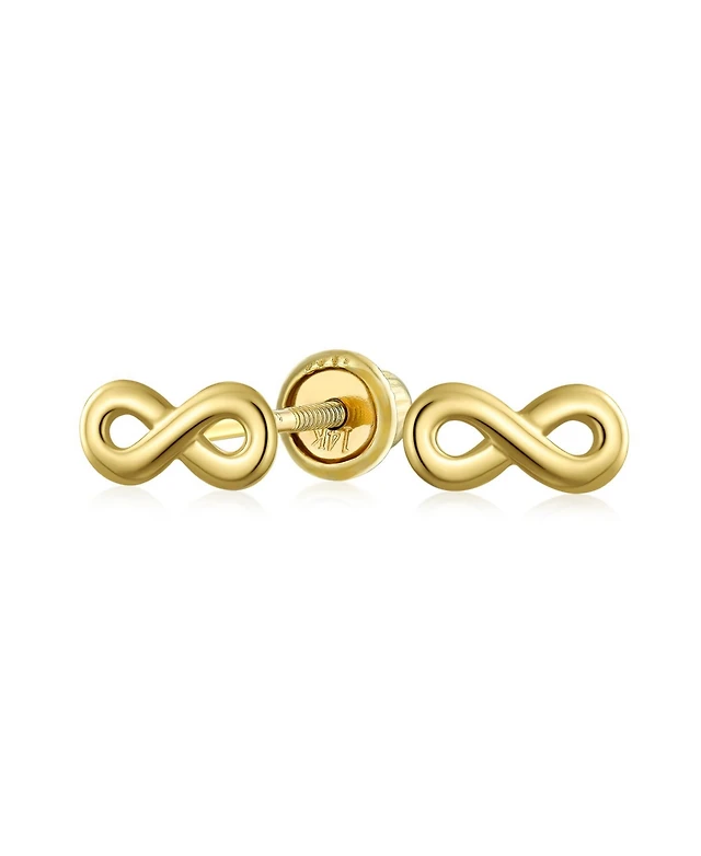 Bling Jewelry Petite Minimalist14K Yellow Gold Symbol Of Love Infinity Stud Earring Secure Screw back