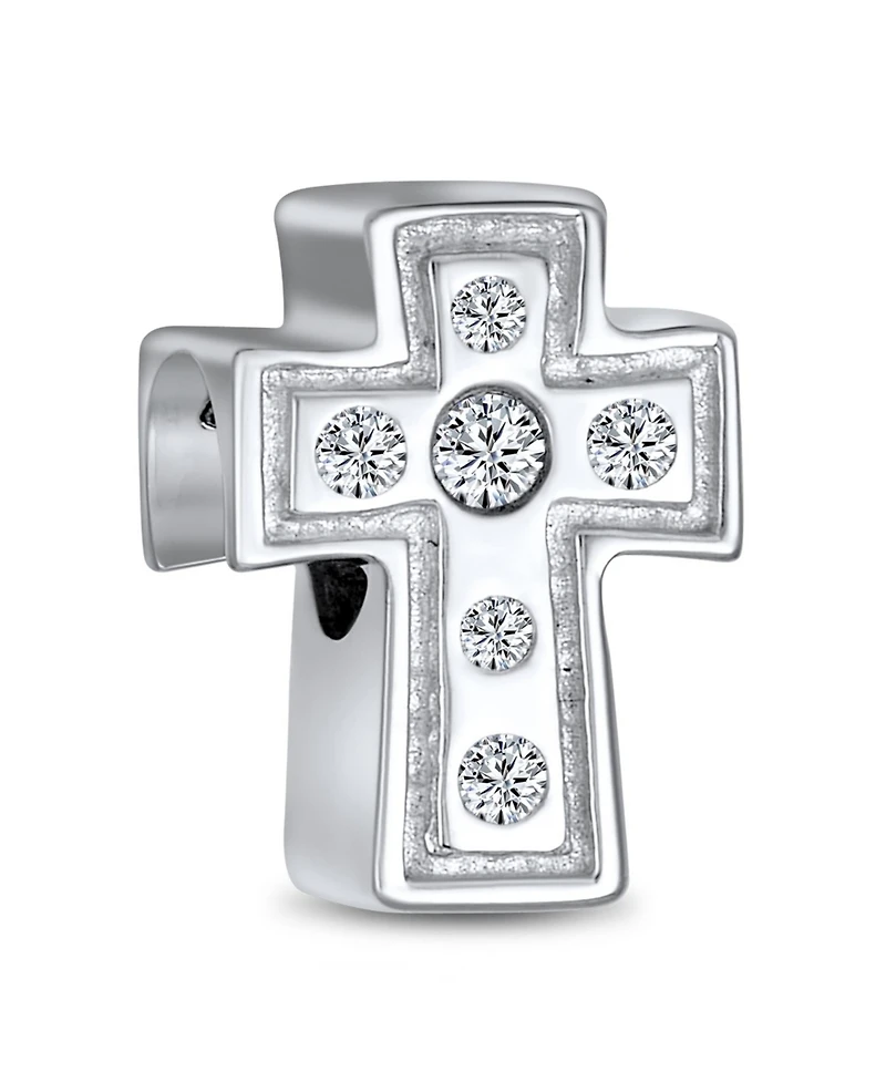 Bling Jewelry Simple Sparkling Cz Cross Charm Bead Communion s Sterling Silver Bracelet