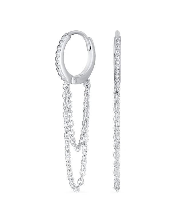 Bling Jewelry Trendy Dainty Cz Hoop Earrings with Pave Accent and Double Chain in Sterling Silver