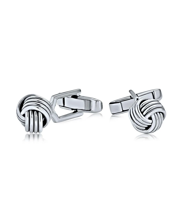 Bling Jewelry Solid Double Sided Twist Love Knot Woven Braided French Style Fixed Bar Backing Shirt Cufflinks Executive Groom Gift Sterling Silver