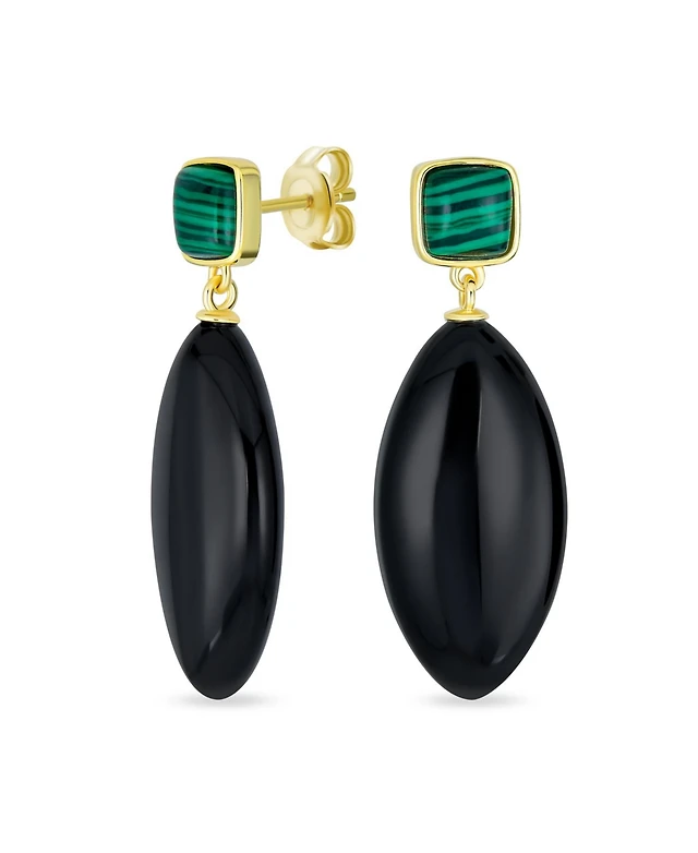 Bling Jewelry Unique Linear Malachite Black Natural Onyx Rhombus Shape Square Multi- Party Dangling Earrings in Gold Plated