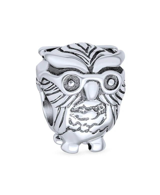 Bling Jewelry Wise Graduate Owl Bird Charm Bead Student Book Worm Oxidized Sterling Silver Fits European Charm Bracelet