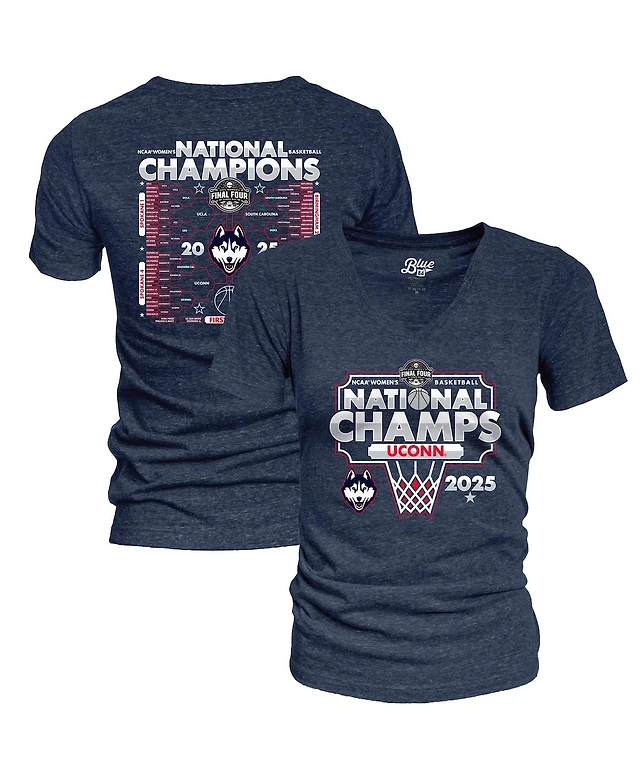 Blue 84 Women's Navy UConn Huskies 2025 Ncaa Basketball National Champions Bracket Tri-Blend V-Neck T-Shirt