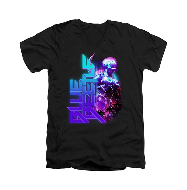 Blue Beetle Mens Lightning Short Sleeve Adult V Neck Premium Cotton Tee / T-Shirt