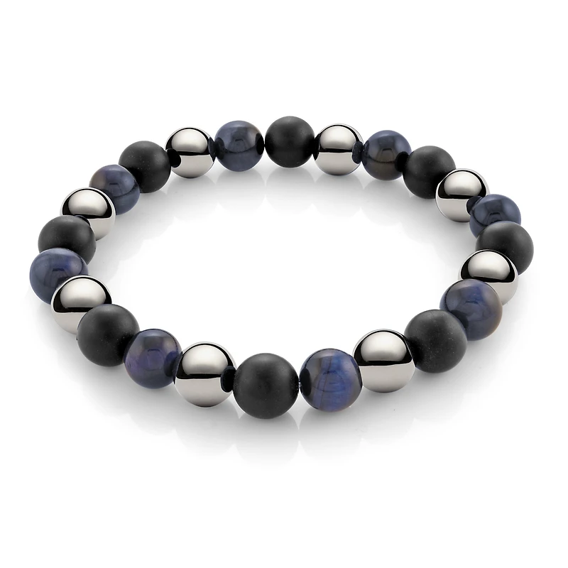 Blue Tiger Eye/Hematite/Onyx Bead Bracelet