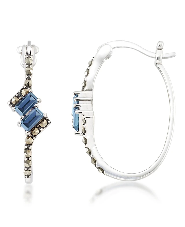 Blue Topaz (1/3 ct. t.w.) & Marcasite Oval Hoops in Sterling Silver