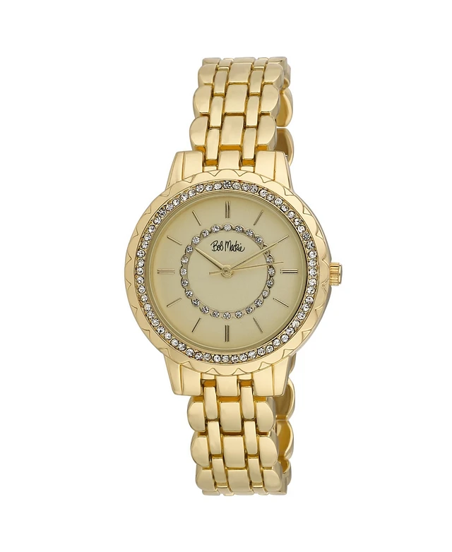 Bob Mackie Unisex Crystal Dial Scallop Bezel Gold-tone Base Metal Bracelet Watch 36mm