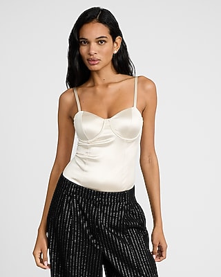 Sculpt and define your figure in this sleek satin bodysuit. This style features a corset style design and adjustable straps for a fit that is tailored to you.