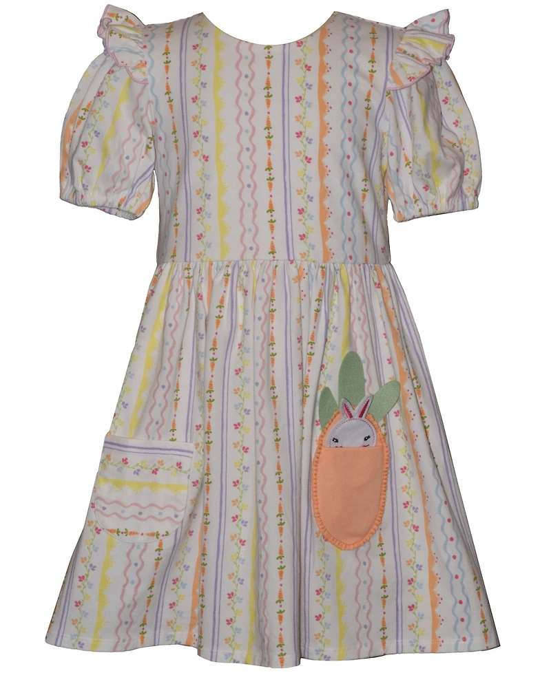 Bonnie Jean Girls' 2T-6X Short-Sleeve Bunny and Carrot Striped Pocket Dress in San Juan, PR