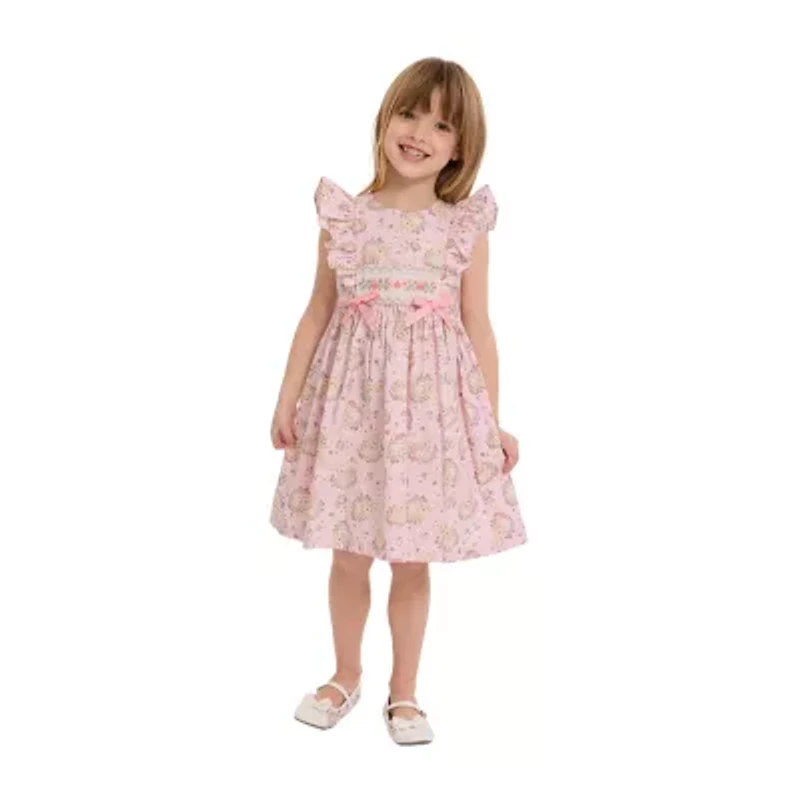 Bonnie Jean Little Girls Smocked Bunny Short Sleeve Flutter A-Line Dress