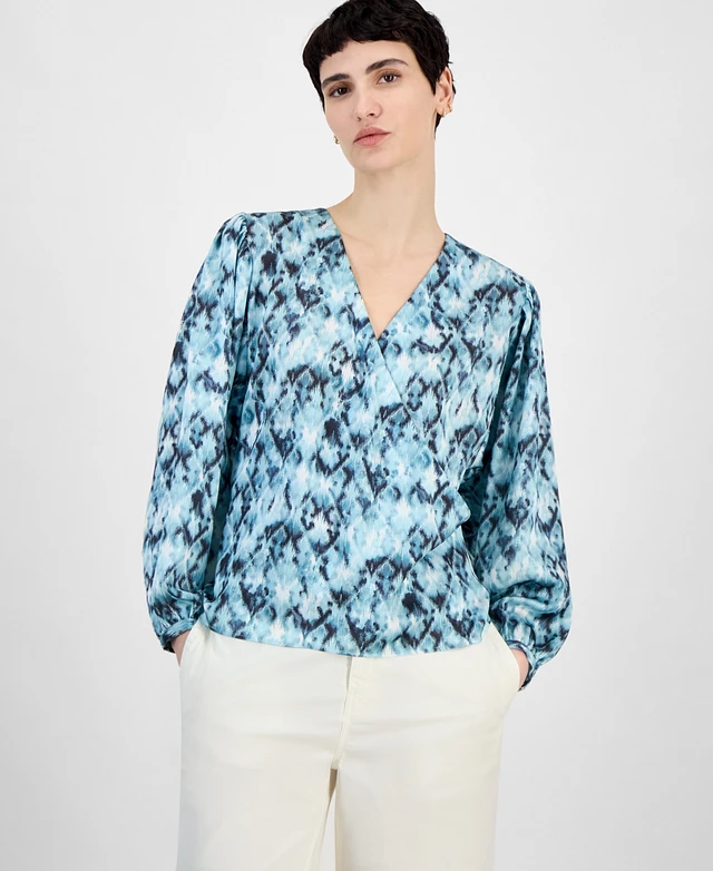 Boss Orange Women's Faux-Wrap Buttoned-Cuff Top