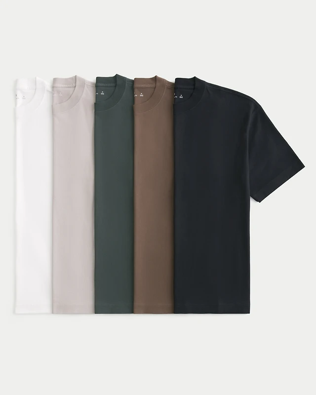 Boxy Heavyweight Cotton Crew T-Shirt 5-Pack