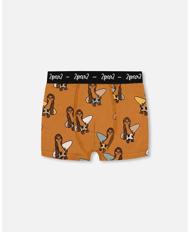 Boy Printed Cotton Boxer Shorts Sloths On Tan Background - Toddler|Child