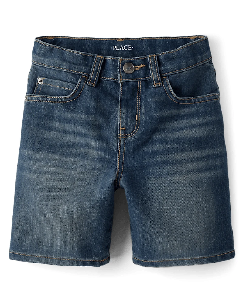 Everyday comfort meets easy style in these jean shorts for busy kids. With a classic fit and soft, pre-washed denim, these boys shorts are built for play, travel and everything in between. Handy pockets and belt loops make these denim shorts a must-have for boys who love reliable, versatile clothes.FABRICATION: 62% cotton/33% polyester/5% recycled cotton denim body, 100% recycled polyester pocketing, importedFIT & DESIGN: Classic fit, mid rise, above-knee lengthCLOSURE: Snap zip fly (sizes 4-7), button zip fly (sizes 8+); inner adjustable waist tabsFEATURES: Belt loops, 5-pocket styling, handsanding & whiskering at front, pre-washed for added softness and to reduce shrinkage
