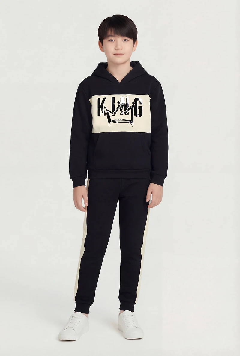 Boys King Graphic Contrast Trim Sweatshirt and Joggers
